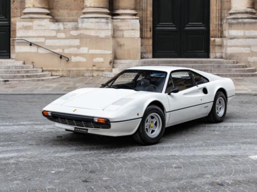 Un modèle réduit de la Ferrari 308 par Hot-Wheel au 1/65ème mesurant 7 cm de long qui est réalisé en métal et matière plastique avec une carrosserie blanche.