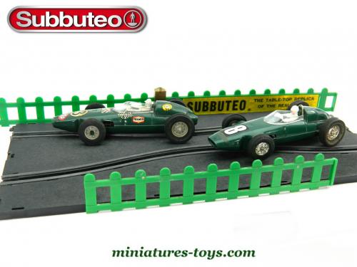 Les 3 barrières Subbuteo commercialisées dans les années 1960 1970 et pouvant être utilisées sur un circuit de Slot-cars.