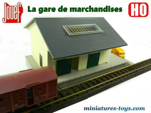 Un modèle réduit de la gare de marchandises au HO de Jouef qui est réalisé en matière plastique a monter sans colle, par simple encliquetage.