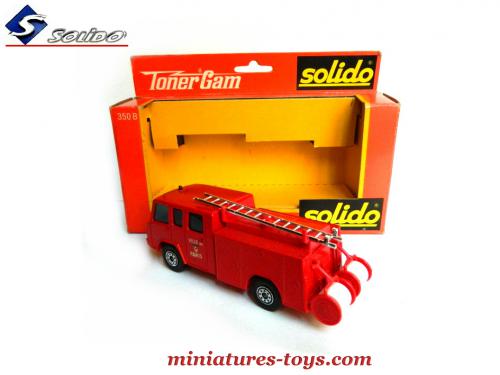 Le camion Berliet 770 KE Camiva Fourgon pompe premiers secours des sapeurs pompiers français de la ville de paris reproduit en miniature par Solido au 1/50ème fut commercialisé de 1973 à 1981 dans la série Toner Gam sous la référence: 350B.