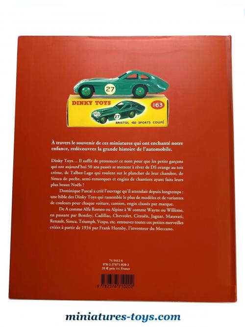 Un imposant ouvrage broché de 448 pages en français format 25 x 29,5 cm qui est un guide illustré de photos en couleurs des miniatures Dinky-Toys, avec un historique, des commentaires et précisions sur chaque voitures, autos de course, camions, véhicules militaires et modèles spéciaux miniatures Dinky.