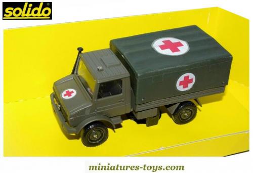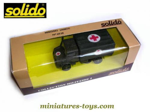Le Mercedes Unimog U 400 bâché sanitaire reproduit en miniature par Solido fut commercialisé à partir de 1988 sous la référence: 6038.