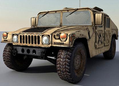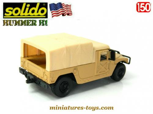 Un modèle réduit Solido du Hummer militaire au 1/50ème mesurant 10 cm de long qui est réalisé en métal et matière plastique de couleur brun sable.