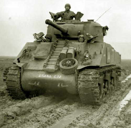 Une figurine d'équipage du Sherman se trouve jointe au char miniature.